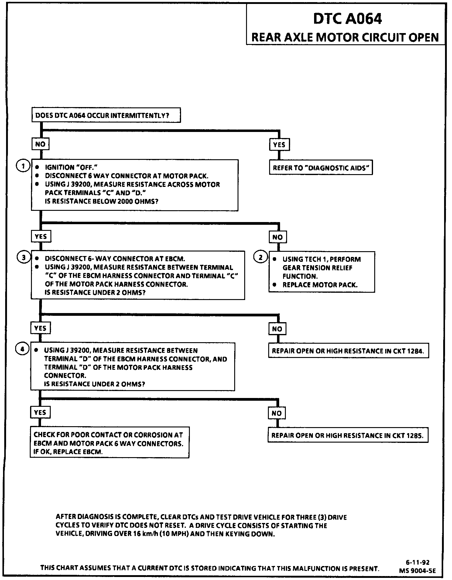 DTC A064 can be set only when the motor is commanded "OFF." If the EBCM detects an out of range voltage in either of the rear axle motor circuits indicating an open circuit, a malfunction exists.