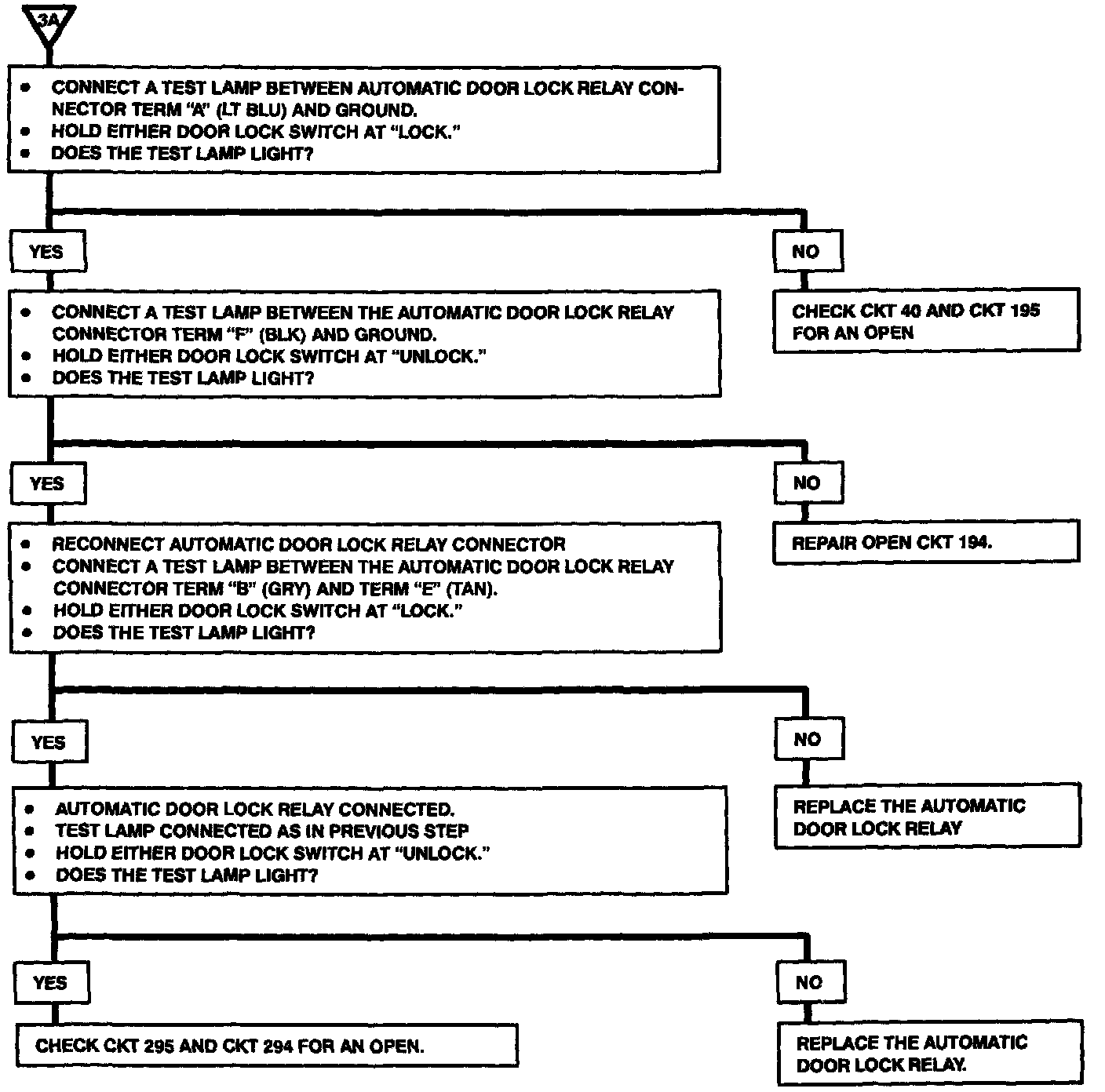 Chart #3 - Power Door Locks Do Not Operate From Either Front Door Lock Switch: