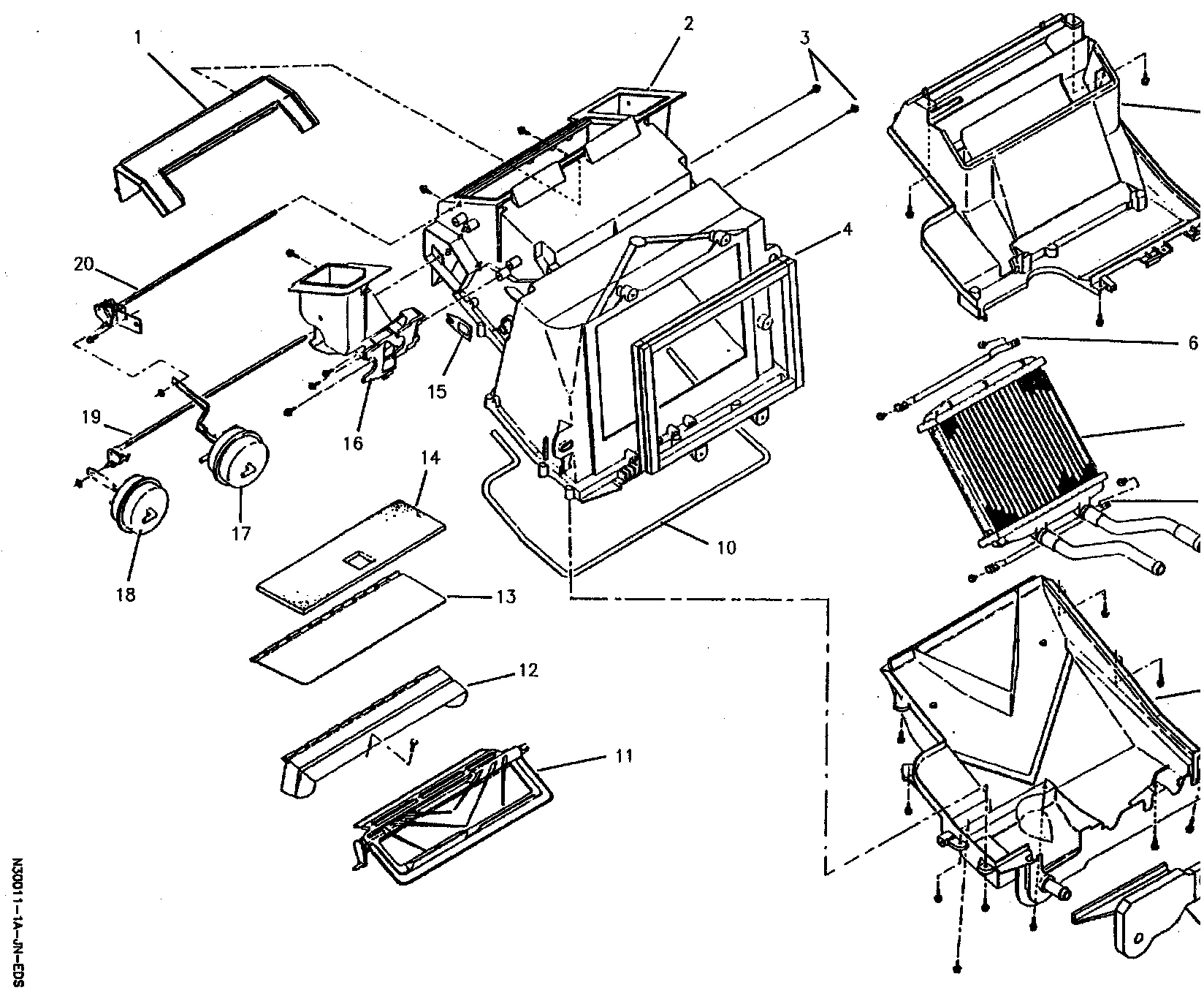 1. Heater core and heater core mounting clamps.
