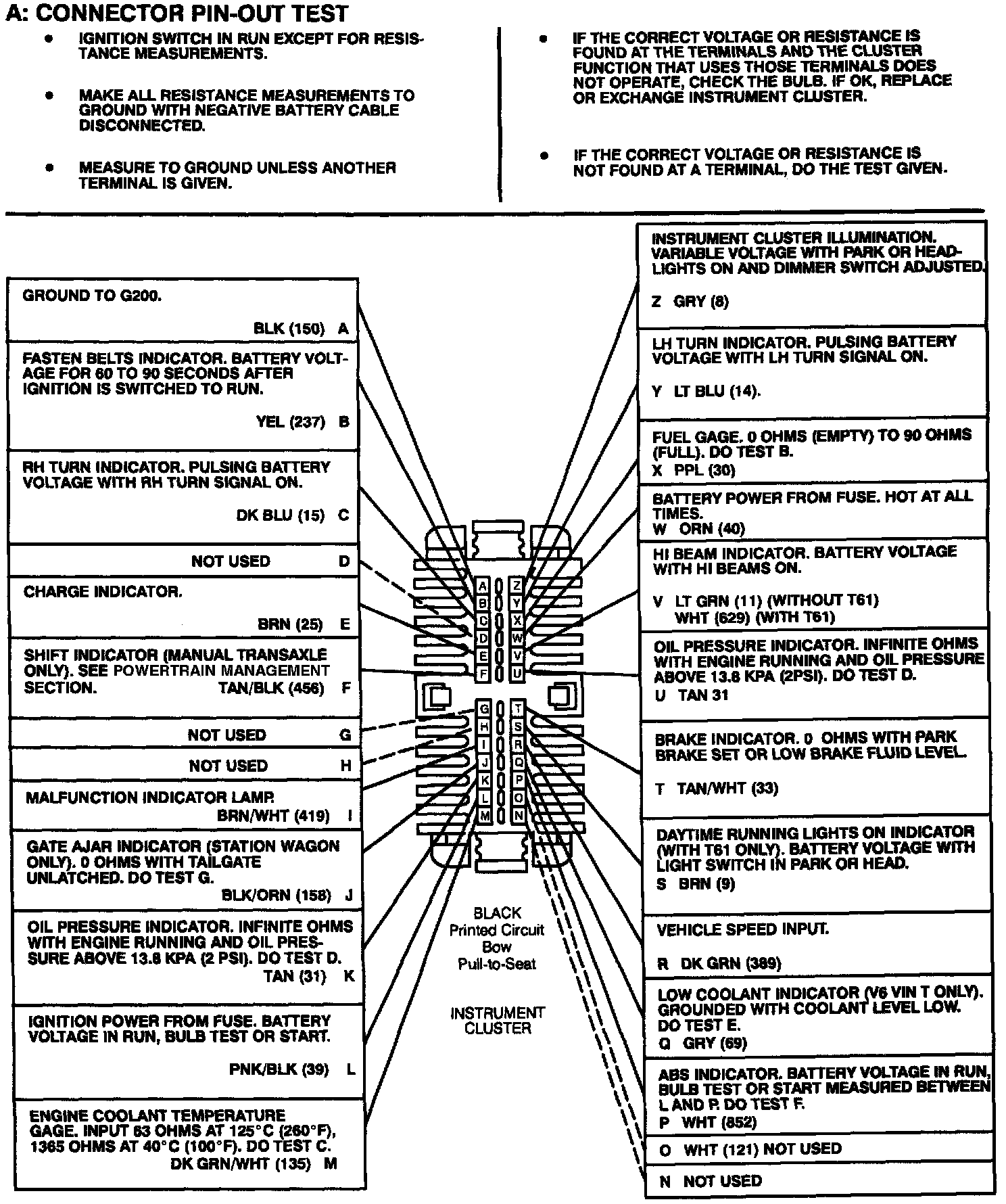 Test A: Connector Pin-out Test: