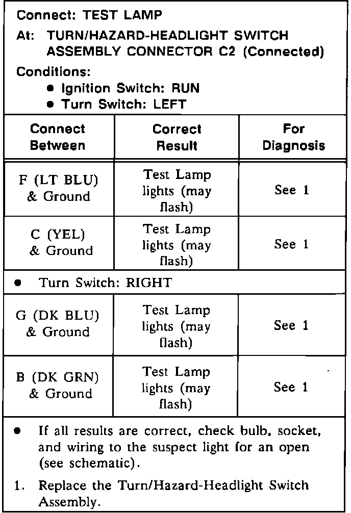 Test C: Turn/Hazard Switch Test: