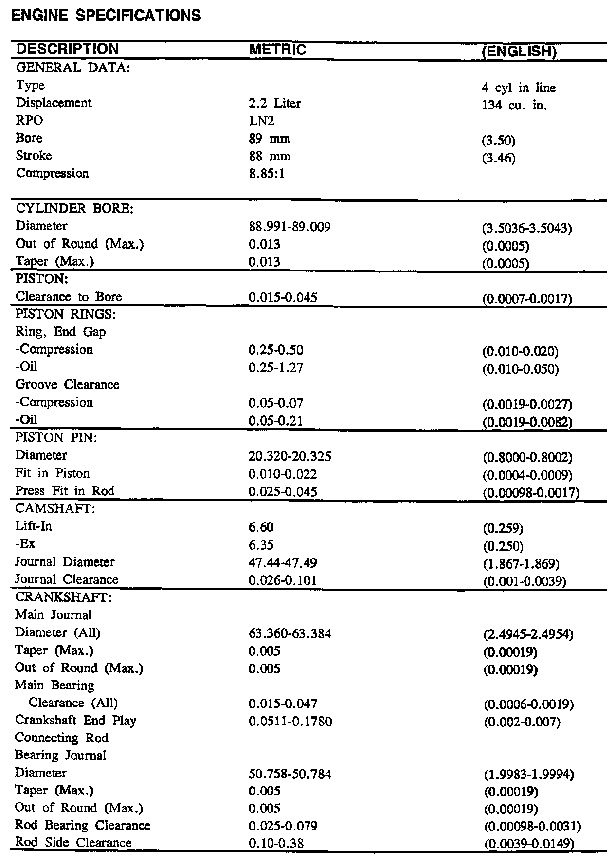 Cavalier/Z24 L4-134 2.2L