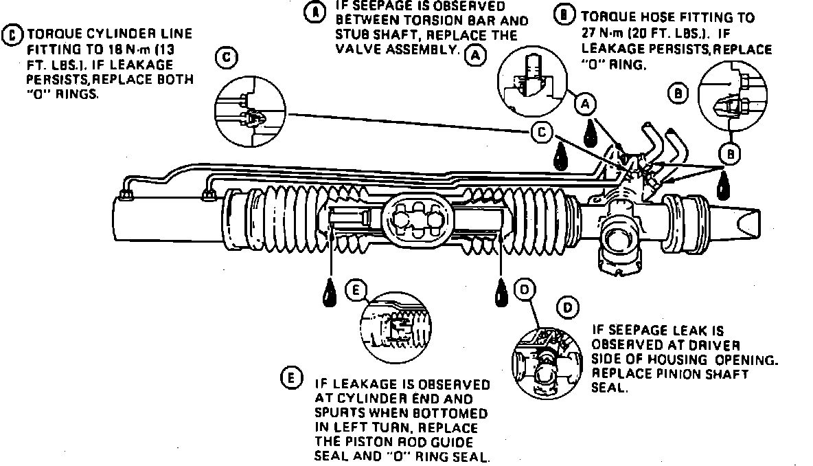Fig. 27 Power Rack & Pinion Steering Gear Leak Diagnosis. Front Wheel Drive Except Beretta, Calais, Cavalier, Corsica, Grand Am, LeMans, Skyhawk, Skylark & Sunbird:
