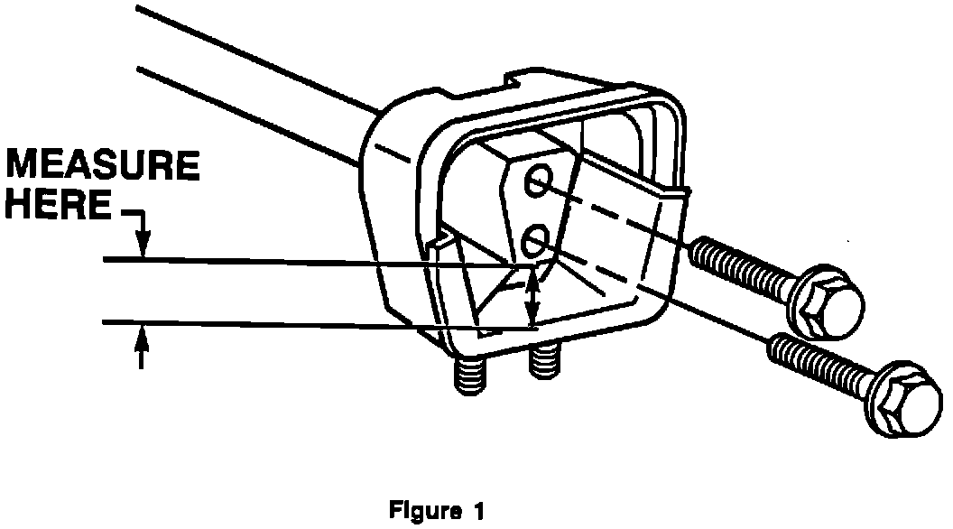 11. Center the snubber block on the transaxle mount (transaxle in "neutral"), then tighten the two nuts holding the snubber block to mount.