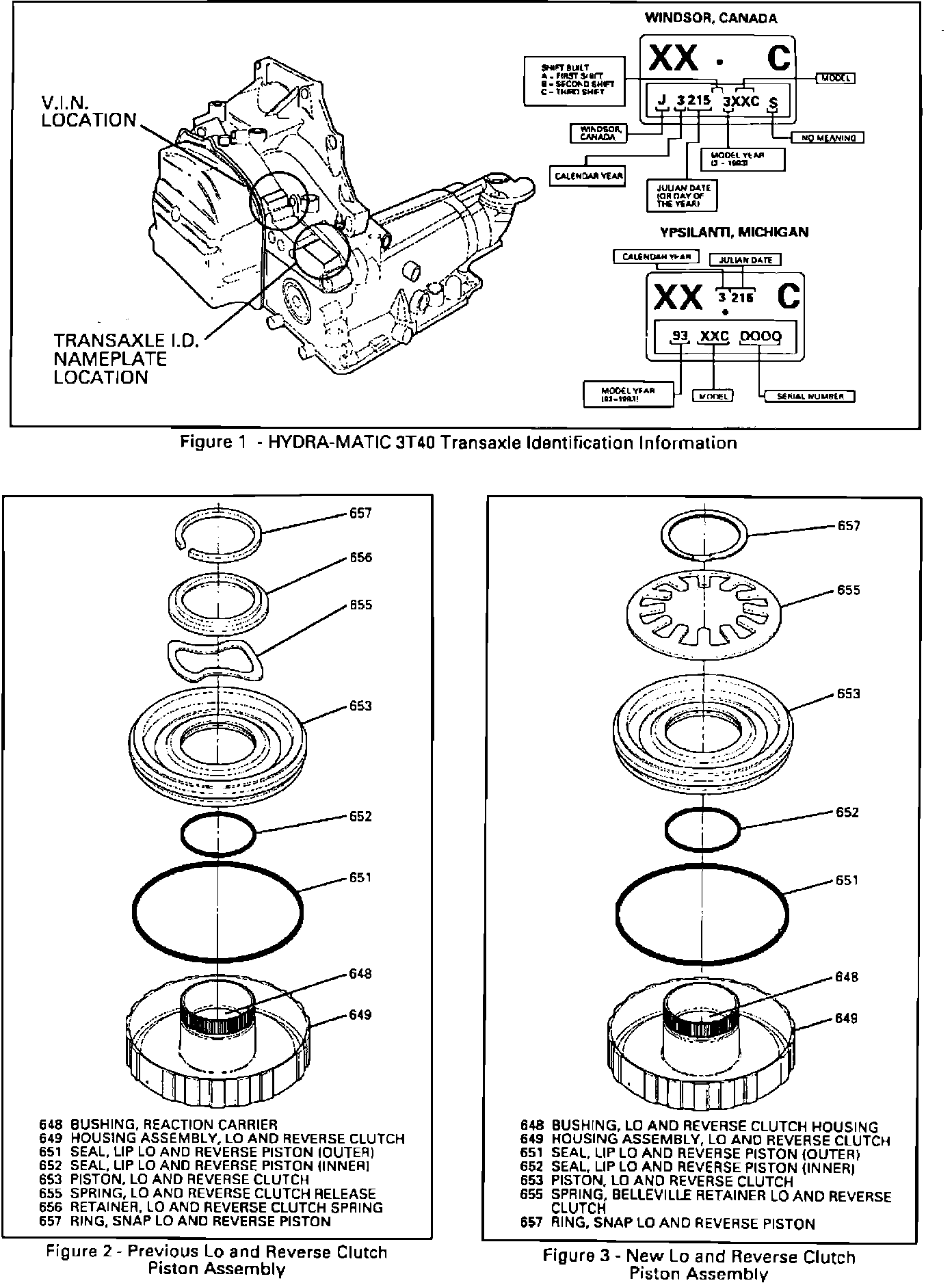 1993 HYDRA-MATIC 3T40 transaxles built beginning July 1, 1992 (Julian Date 182) already contain the new design return spring and spiral retaining ring. The new return spring and spiral retaining ring can be used to service any 1992-1993 HYDRA-MATIC 3T40 (previously THM 125-C) transaxle.