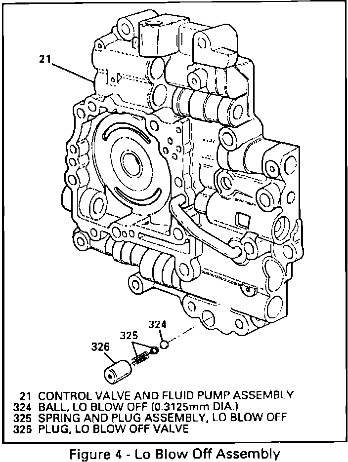 If the previous design return spring and retainer is being replaced with the new design, install the lo blow off line-up from the service package into the transaxle when the return spring is changed.