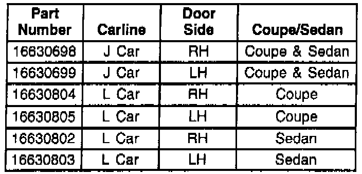Follow the diagnostic procedure as listed below. If a resistance other than the specified value registers during testing, replace the malfunctioning door handle switch, (see P/N chart). Continue through the entire test to check that both the RH and LH door handle switches are functioning properly.