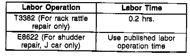 Rack rattle only occurs on "L" and "N" vehicles. Shudder occurs on "J/L/N" vehicles. This bulletin applies to 1993 "J/L/N" vehicles built prior to the VIN breakpoints listed below, 1992 "N" vehicles (except LGO and LG7 engine), "L" cars (except LGO) and 1992 "J" cars (shudder only).
