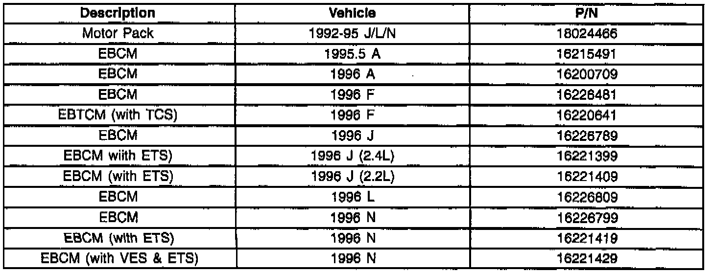 The 1997 Delphi Chassis diagnostic assistance and parts return program will be in effect for the following ABS VI parts: