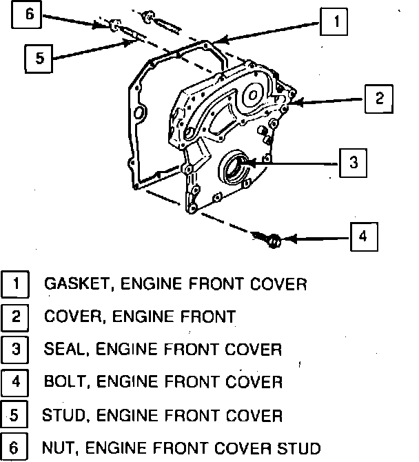 1. Apply Loctite 262 or equivalent to front cover stud threads. Apply Loctite 565 or equivalent to front cover bolt threads.