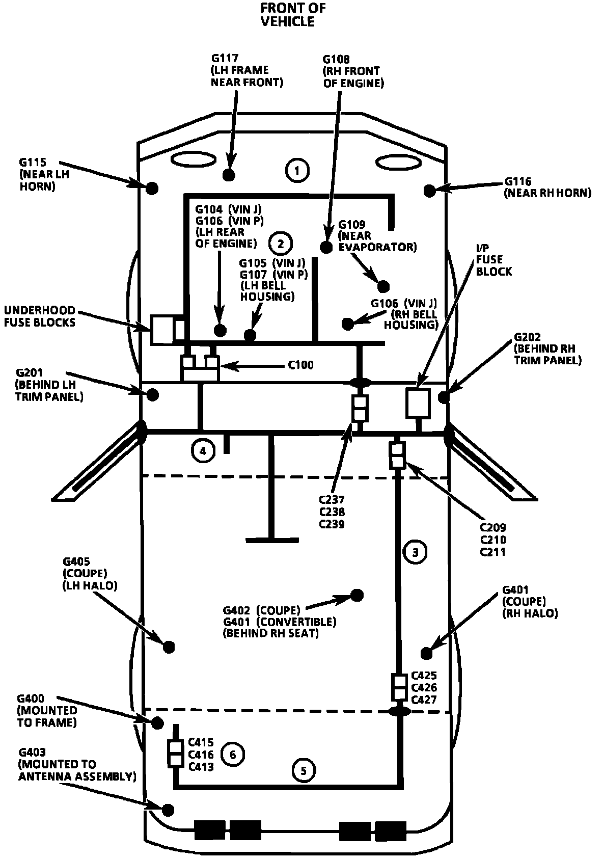 Harness Routing And Ground Location Views: