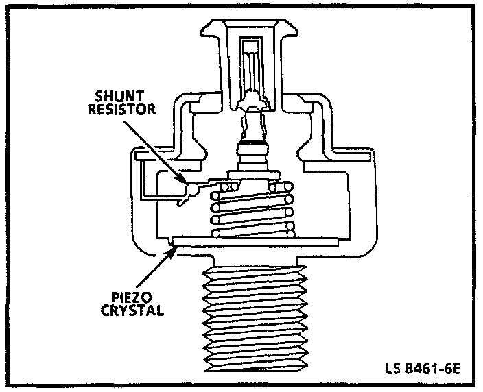When abnormal engine vibrations occur (spark knock), slight distortions of an element in the sensors generate an AC voltage signal that is detected by the ECM. The voltage potential produced depends on the severity of the knock. When a knock signal is detected, the Electronic Spark Control (ESC) system (built into the ECM) varies the timing signal to the ignition module to maximize performance and minimize spark knock.