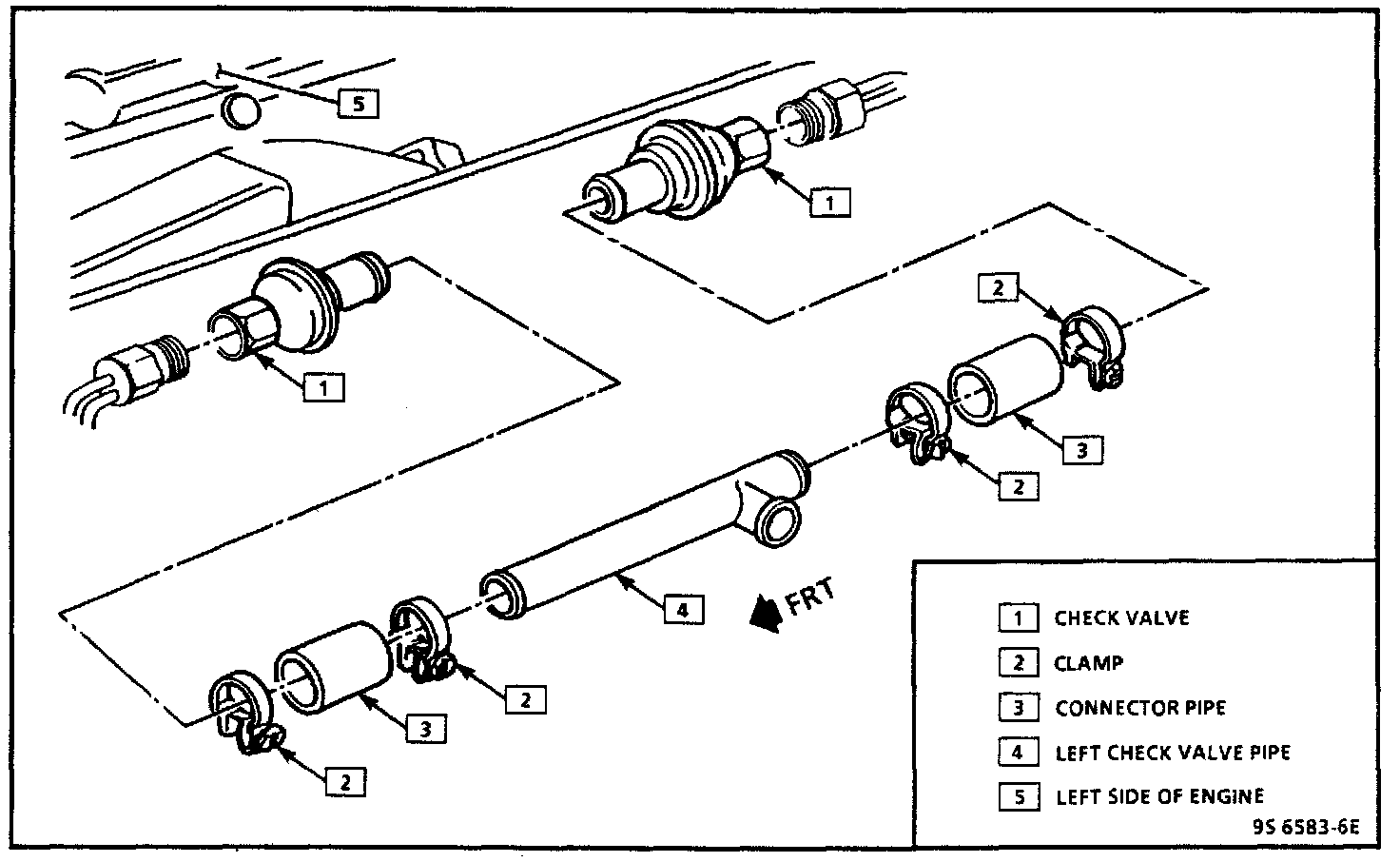 1. Remove hose clamps and disconnect air supply hose from "Tee" pipe between check valves.