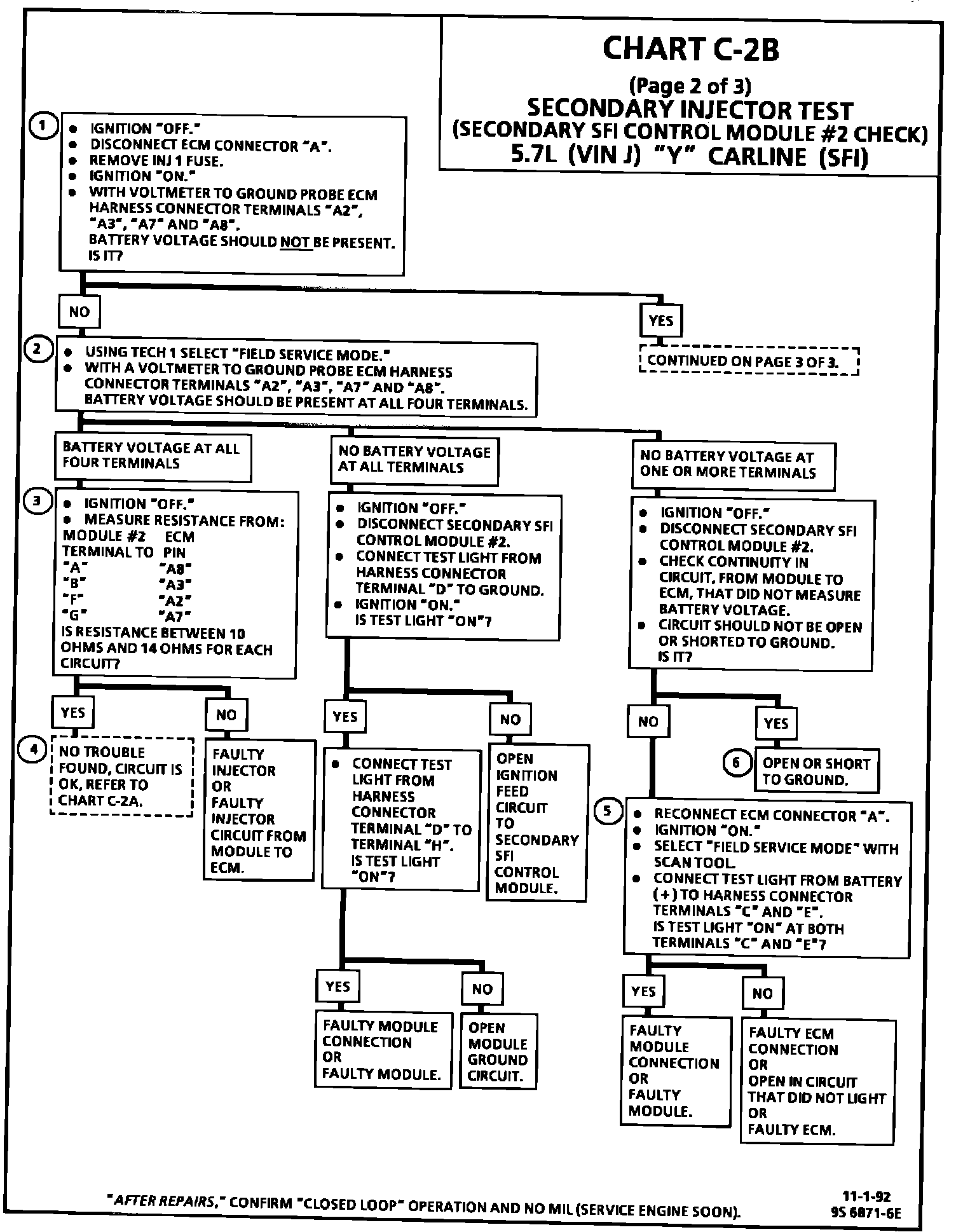 This bulletin revises Service Manual (ST364-94-2) Section 6E3-C2 Driveability and Emissions. CHART C-2B SECONDARY INJECTOR TEST in this bulletin replaces and supersedes CHART C-2B SECONDARY INJECTOR TEST used in the 1990-93 Corvette Service Manuals.