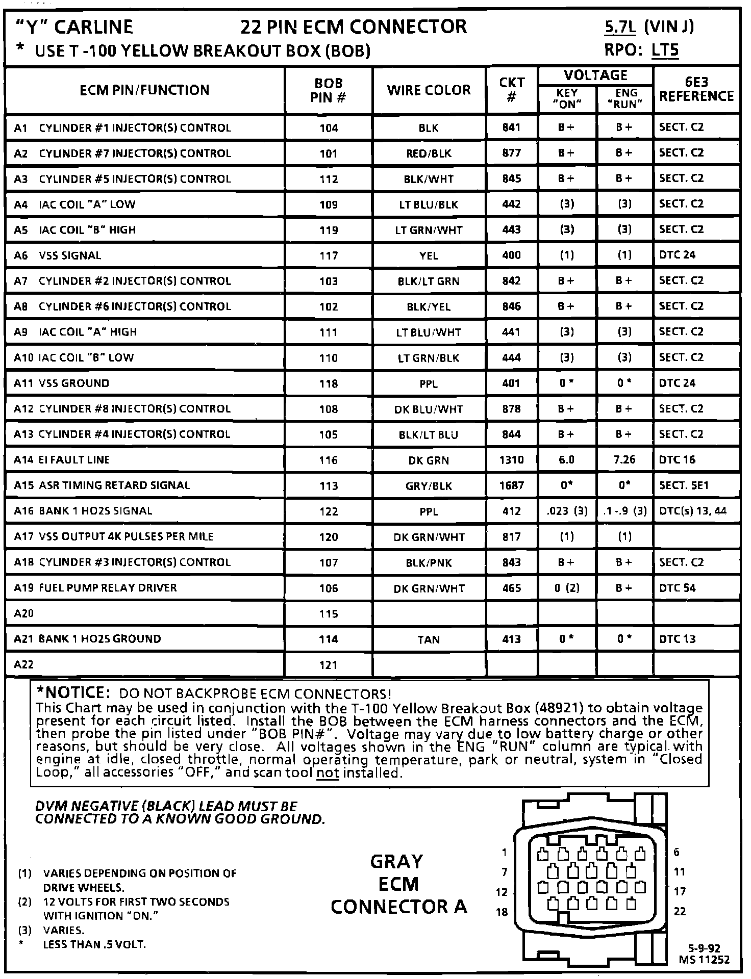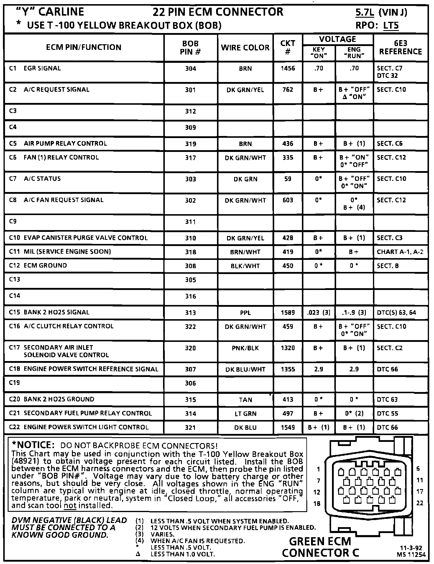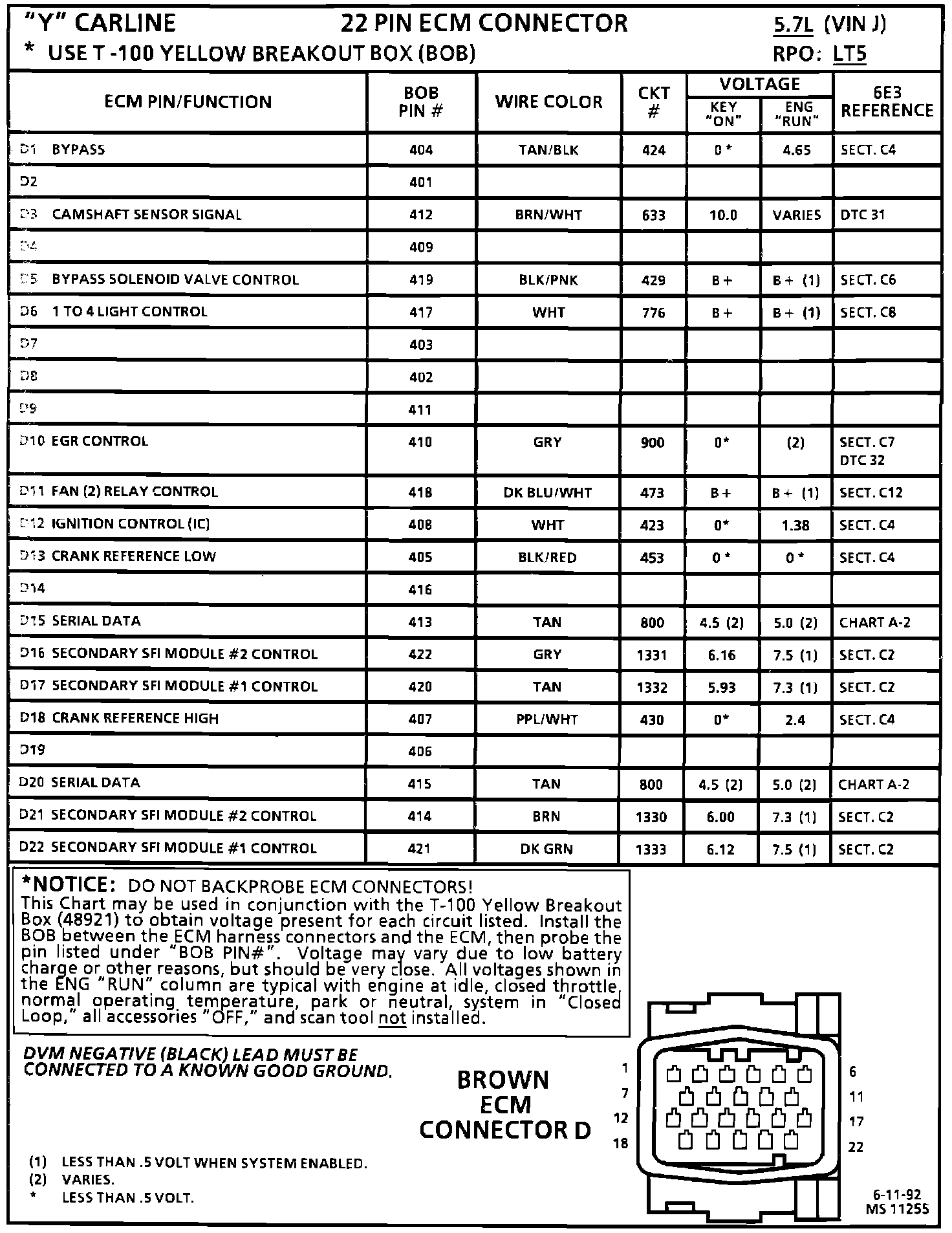 ECM Pin/Voltage Chart And Connector ID (1 Of 4):