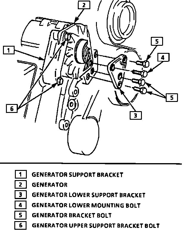6. Remove rear support bracket to alternator retaining bolt.