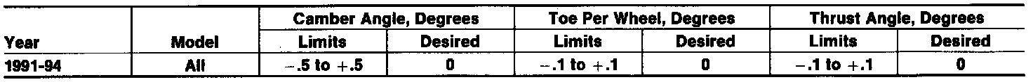 Rear Wheel Alignment Specifications: