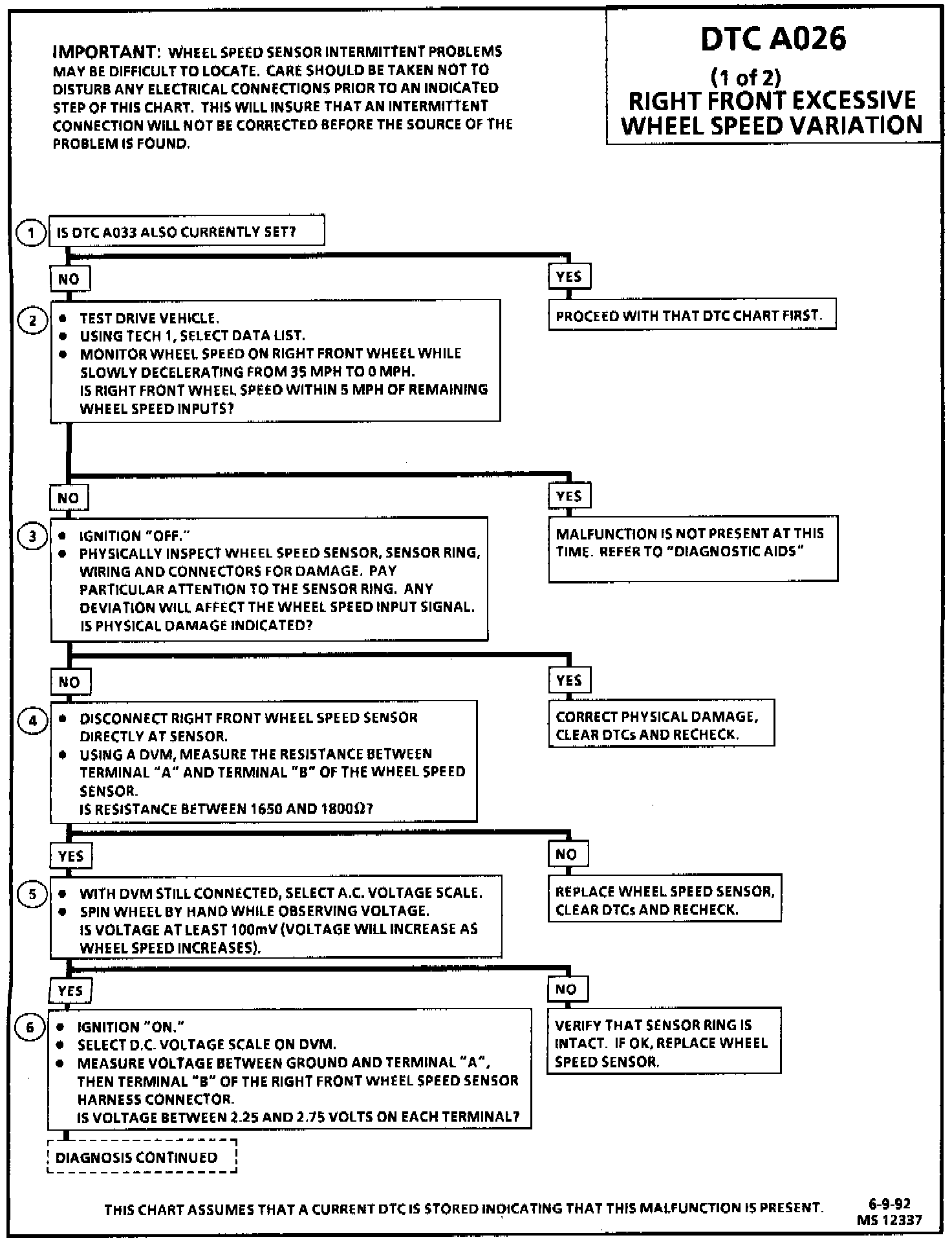 DTC A026 can be set when the brake is "OFF." The purpose of this test is to detect a situation in which the right front wheel acceleration or deceleration is beyond specified limits.