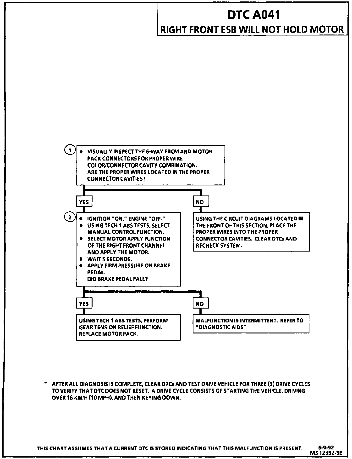 DTC A041 can be set during initialization. If the Electronic Brake Control Module (EBCM) detects that the ESB could not hold the piston in the home position, a malfunction exists. DTC A086 is always set with DTC A041.