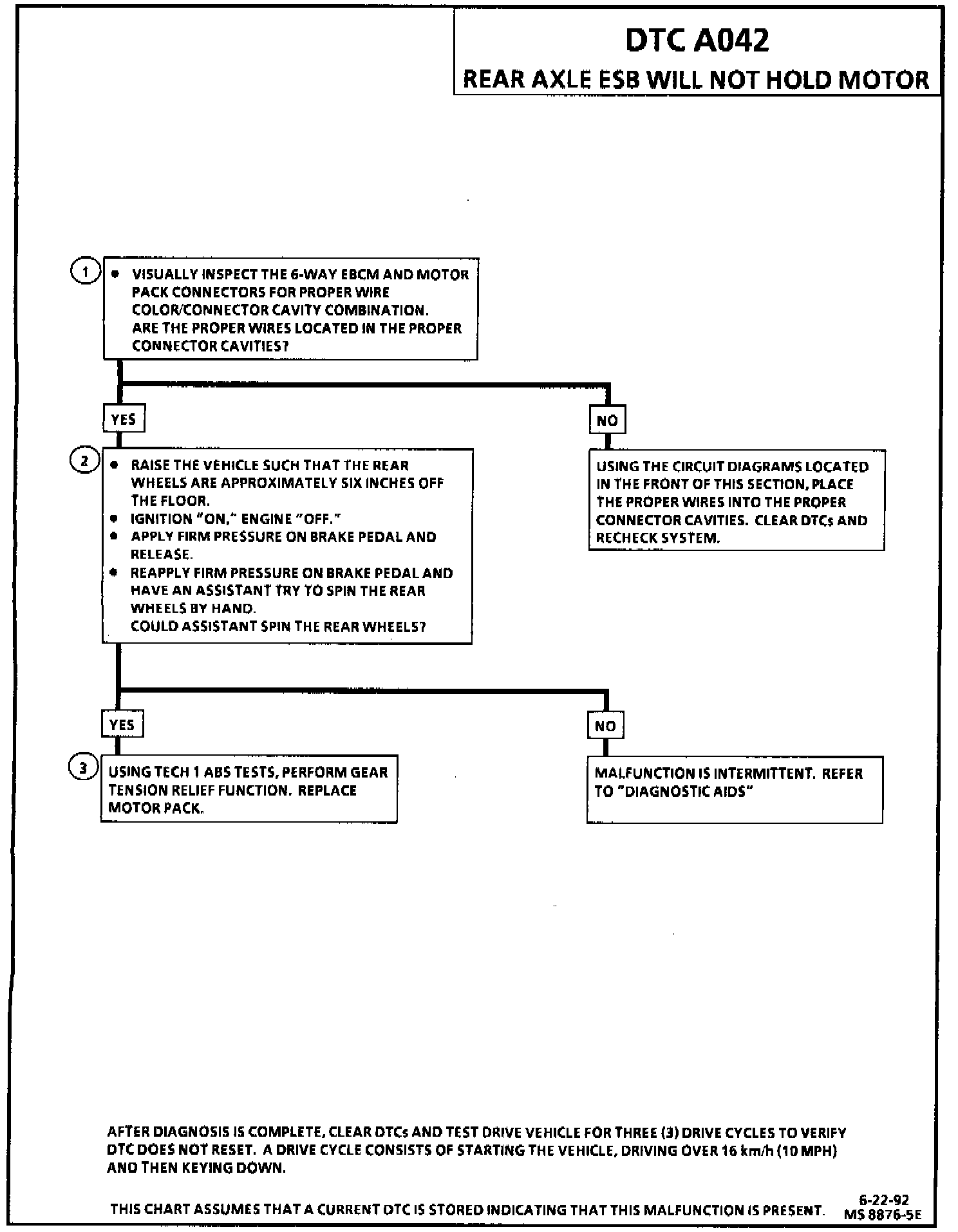 DTC A042 cannot be set during initialization. If the Electronic Brake Control Module (EBCM) detects that the ESB could not hold the piston in the home position, a malfunction exists. DTC A086 is always set with DTC A042.