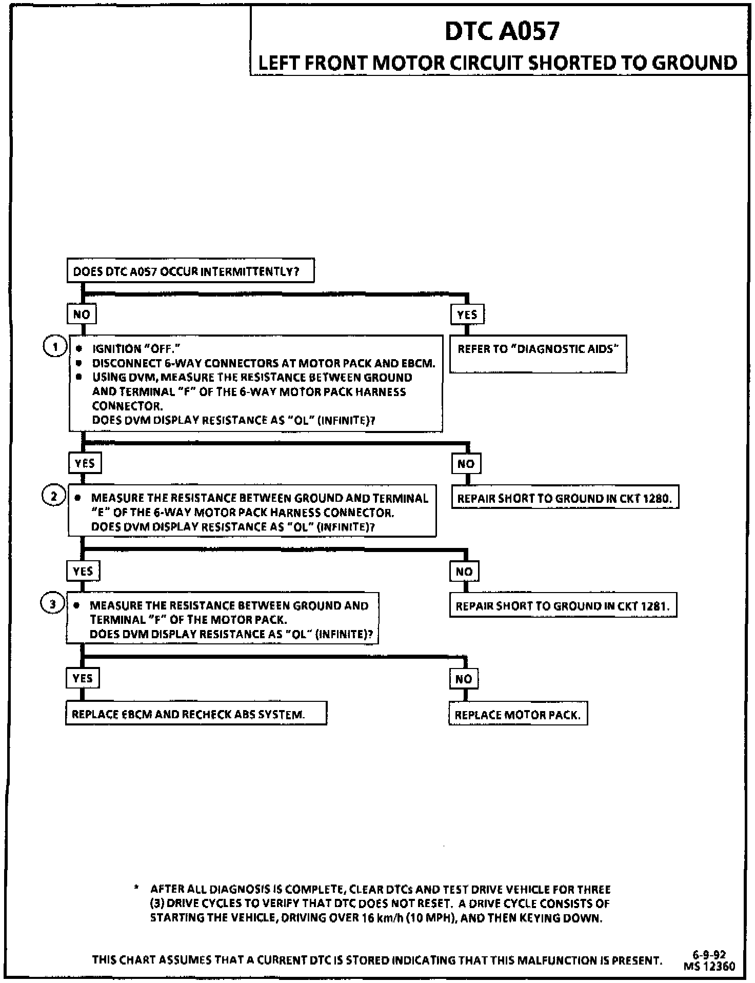 DTC A057 can be set anytime. If the Electronic Brake Control Module (EBCM) detects an out of range voltage on either of the left front motor circuits indicating a circuit shorted to ground, a malfunction exists.