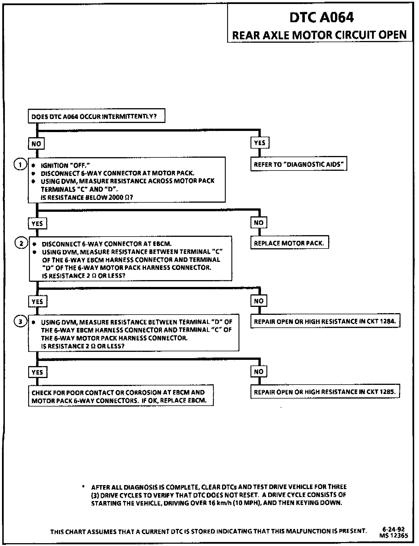 DTC A064 can be set only when the motor is commanded "OFF." If the Electronic Brake Control Module (EBCM) detects an out of range voltage on either of the rear axle motor circuits indicating an open circuit, a malfunction exists.