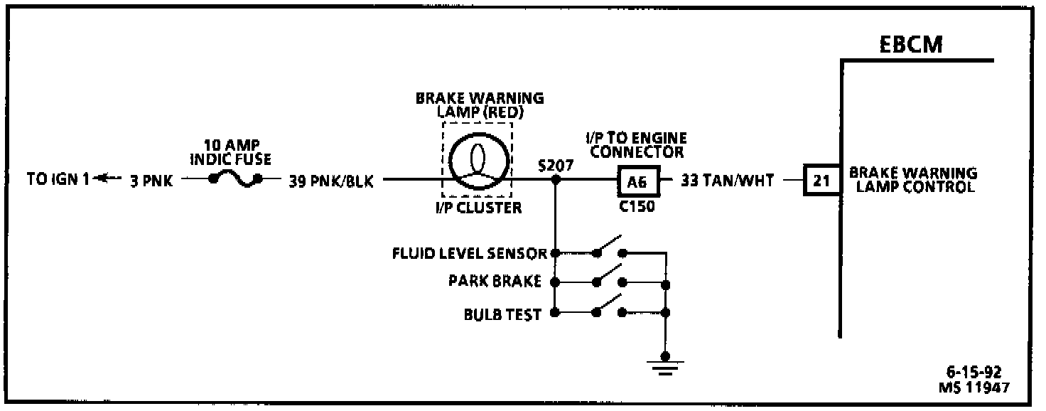 3. Because the red brake warning lamp has current supplied to it through the 10 amp INDIC fuse, this step would indicate if the ignition circuit is complete to the lip cluster.