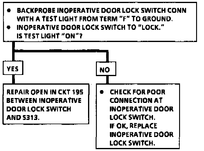 Chart 5 Lock Function Inoperative (Unlock Function Operative) From One Door Lock Switch: