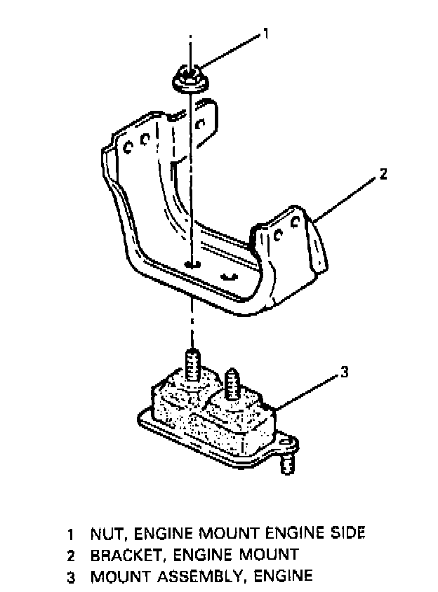 19. Nuts retaining engine torque strut mount bracket, battery cable/ground wires, bracket at bellhousing and bolt retaining torque strut bracket at engine lift bracket.