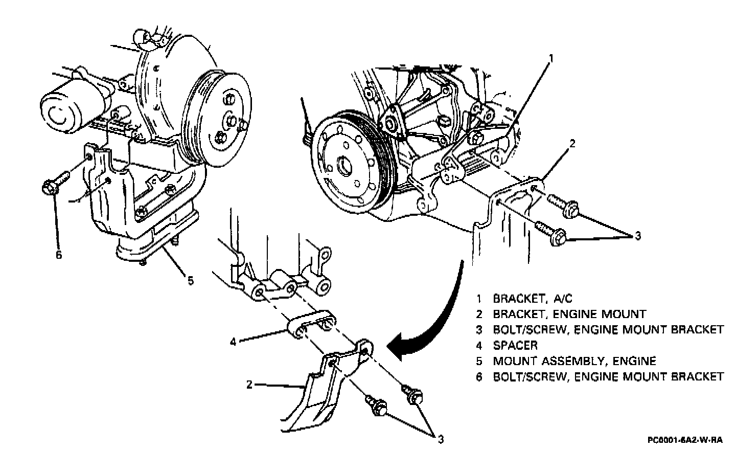 18. Nuts retaining engine torque strut mount bracket, battery cable/ground wires, bracket at bellhousing and bolt retaining torque strut bracket at engine lift bracket.