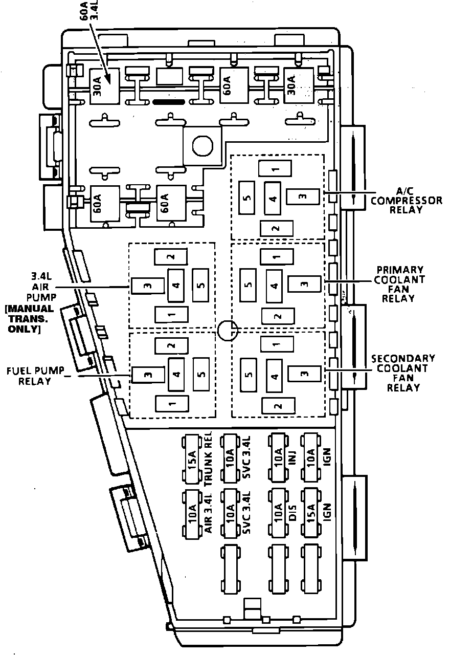 The A/C compressor clutch relay is located in the right side underhood electrical center.