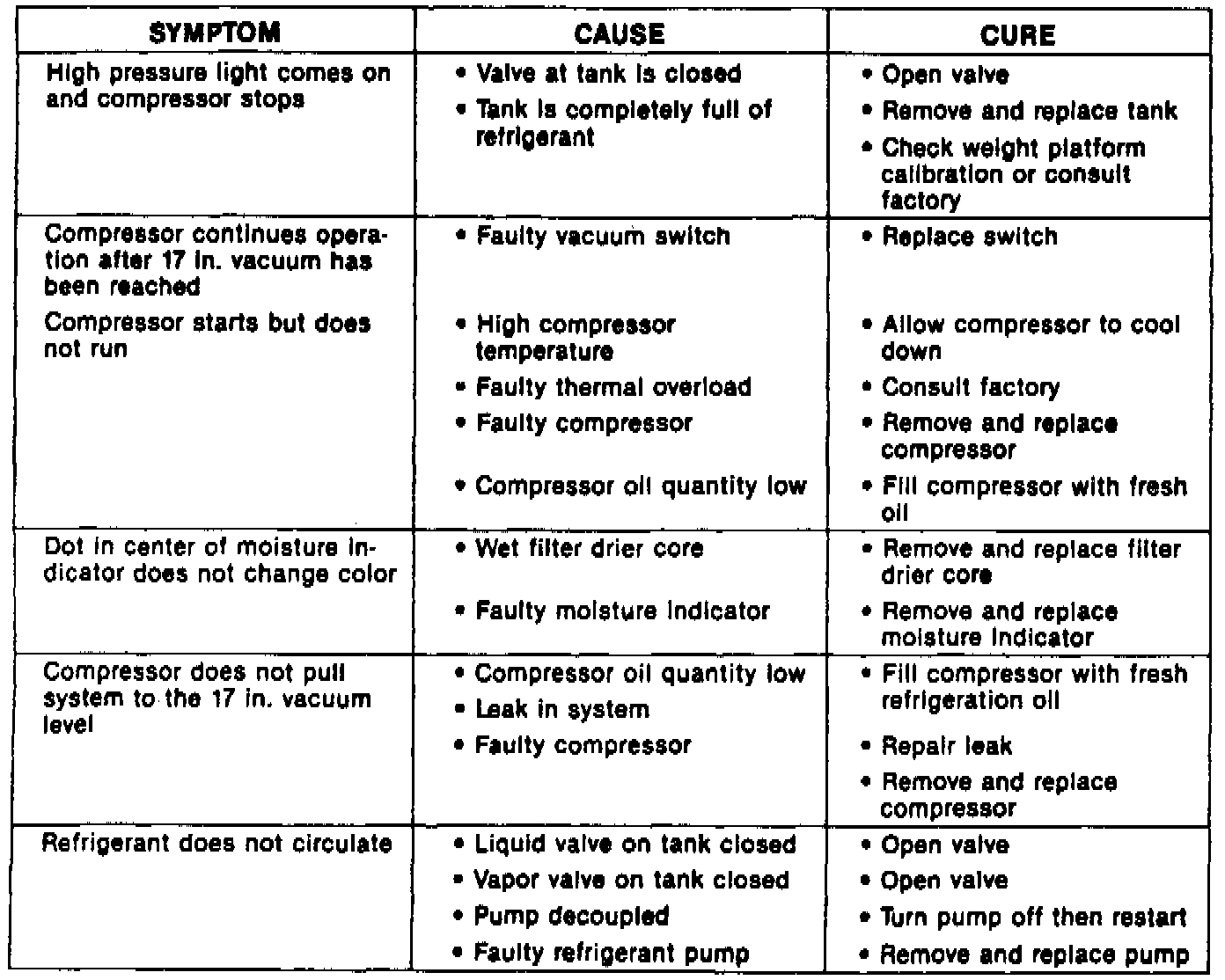 Refer to the Troubleshooting Chart if a problem is encountered.