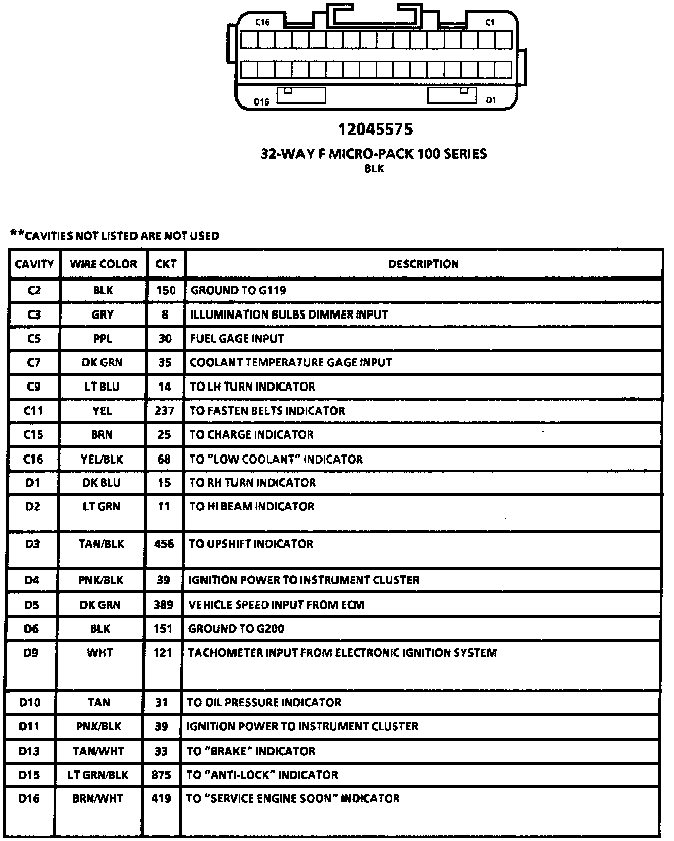 Instrument Cluster Connector: With Gages: