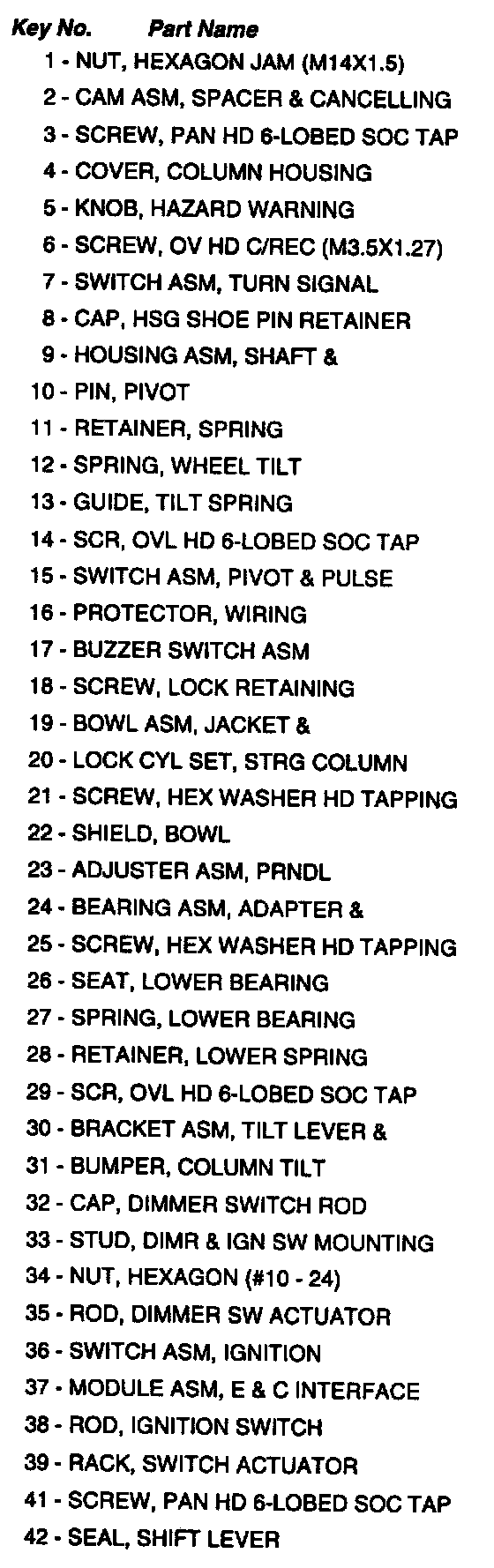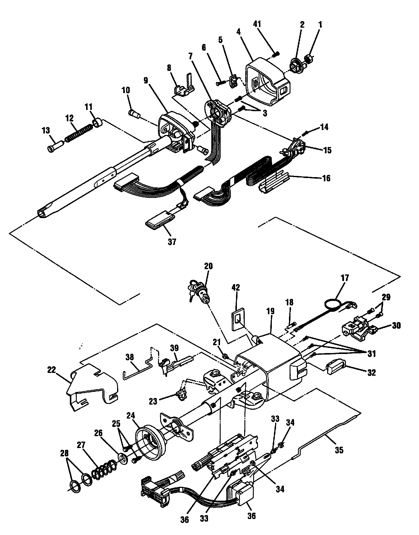 Important: Position turn signal switch (7) so that turn signal switch screws (3) and housing cover screw (41) can be installed through openings in switch.