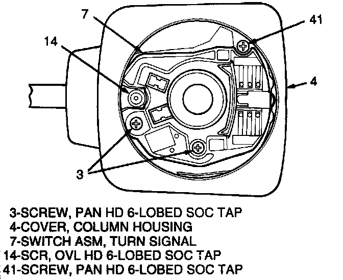 Important: Position turn signal switch (7) so that turn signal switch screws (3) and housing cover screw (41) can be removed through openings in switch.