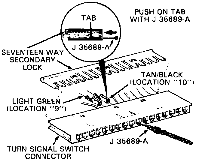 16. Seventeen-way secondary lock from turn signal connector (7).