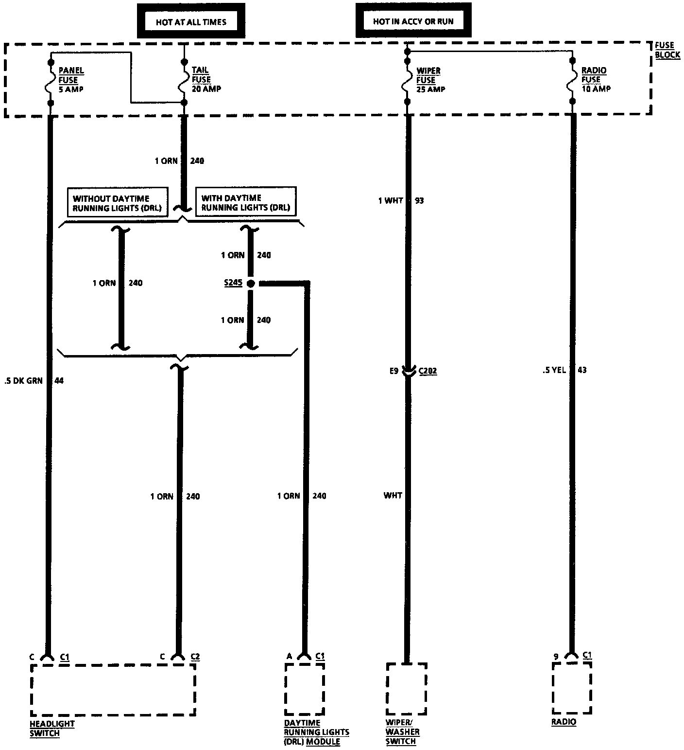 Fuse Block Details, Panel, Tail, Wiper And Radio Fuses: