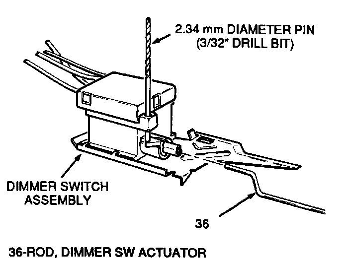 Important: To adjust dimmer switch, insert a 2.34 mm diameter pin (3/32" drill bit). Push switch against actuator rod (36) to remove all lash.