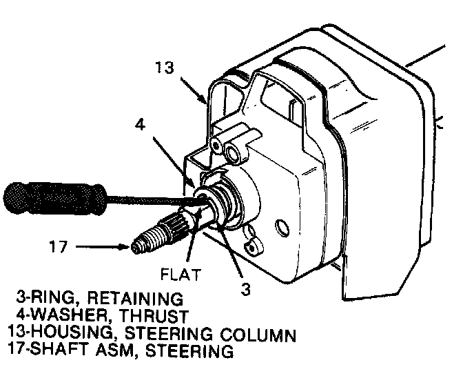 7. Place opening in retaining ring (3) over flat on steering shaft (17).