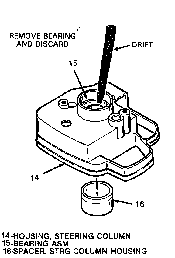 13. Bearing (15) with drift and discard.