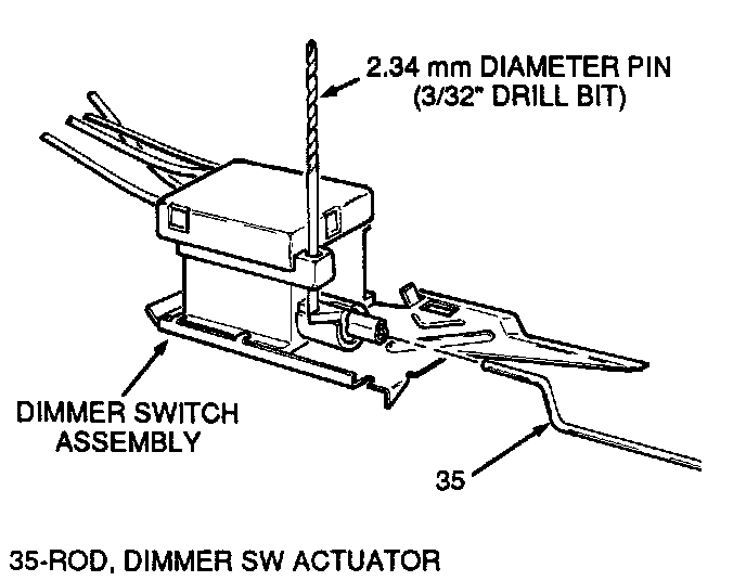 Important: To adjust dimmer switch, insert a 2.34 mm diameter pin (3/32" drill bit). Push switch against actuator rod (35) to remove all lash.