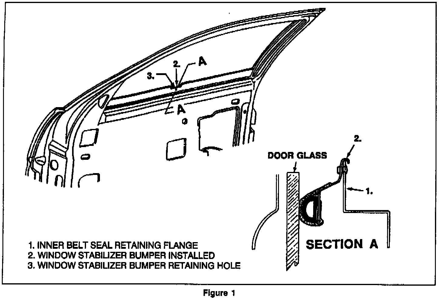 Install window stabilizer bumper to the inner belt reinforcement following procedure below:
