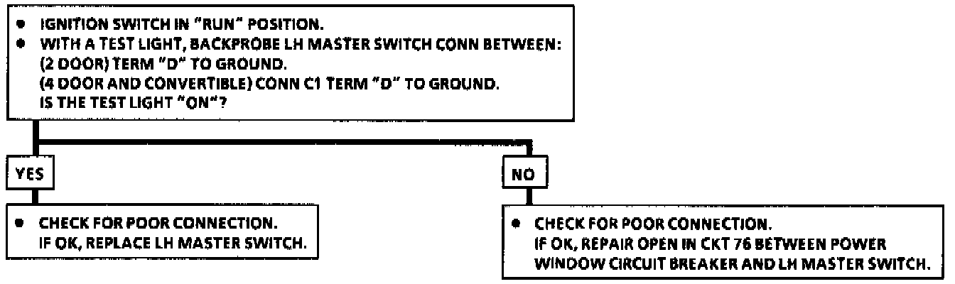 Chart 3 RF, RR, LR Window Is Inoperative From The LF Master Switch, With Normal Operation From The Individual Window Switch:
