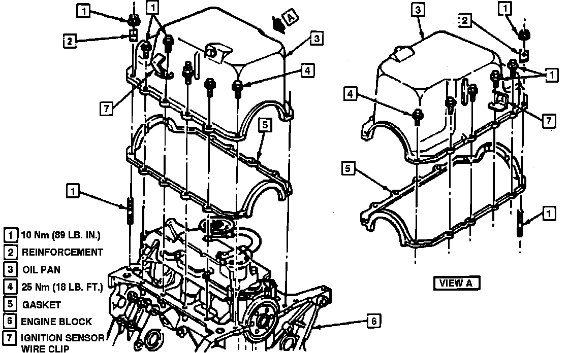 14. Reverse procedure to install, tightening oil pan bolts to specifications shown in Fig. 17.