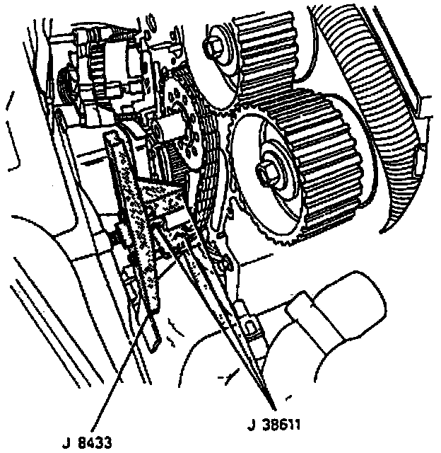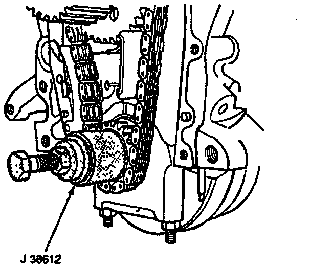 5. Timing chain, crankshaft sprocket, and intermediate shaft sprocket as an assembly, using J-8433 and J-38611 on crankshaft sprocket.