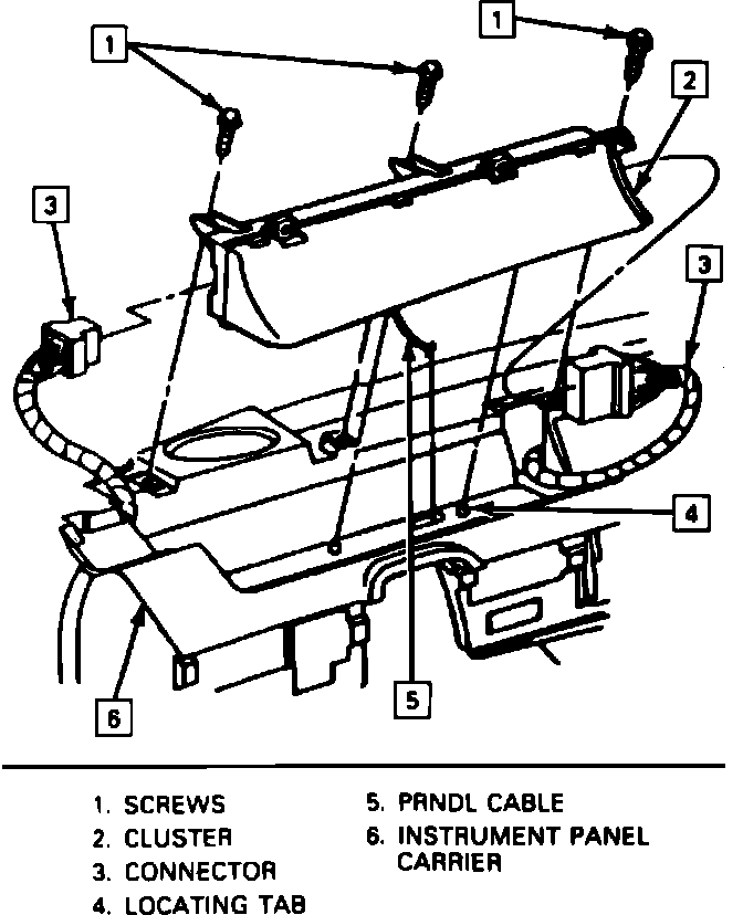 5. Disconnect instrument cluster assembly electrical connectors, then remove cluster retaining screws, Fig. 195.