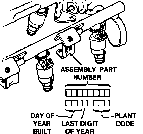 An eight digit identification number is stamped on the fuel rail. Refer to this number if servicing or part replacement is required.