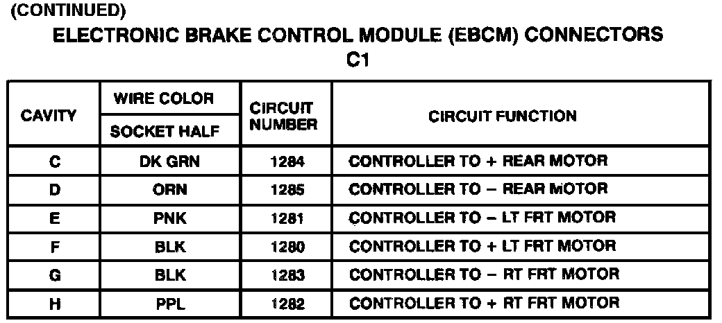 Harness Connector Faces: Electronic Brake Control Module (EBCM)- C1 (Description):