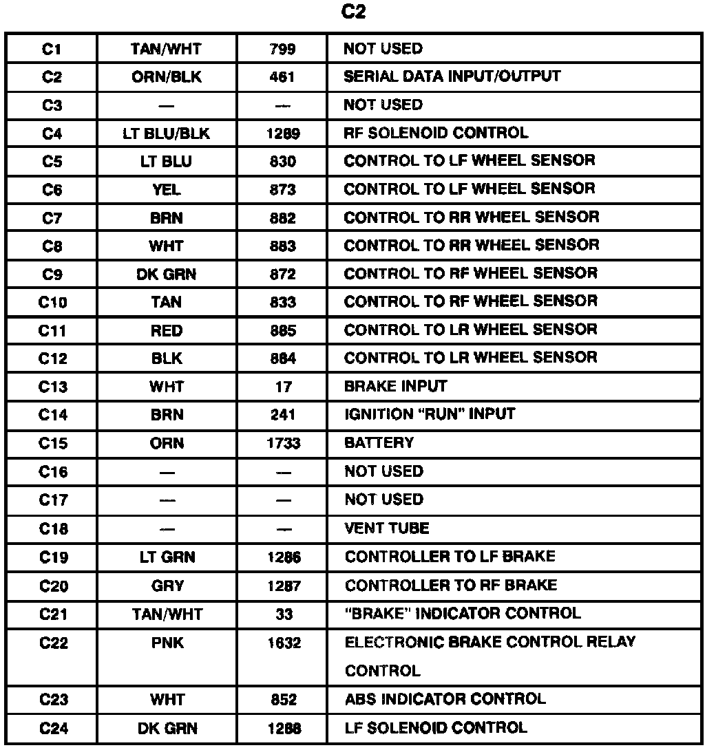 Harness Connector Faces: Electronic Brake Control Module (EBCM)- C2 (Description):