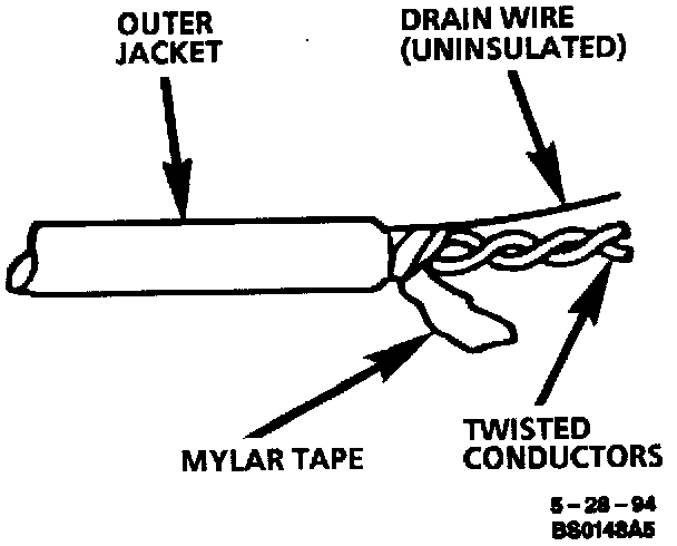 After you have spliced and taped each wire, rewrap the conductors with file mylar tape. Be careful to avoid wrapping the drain wire in the tape.